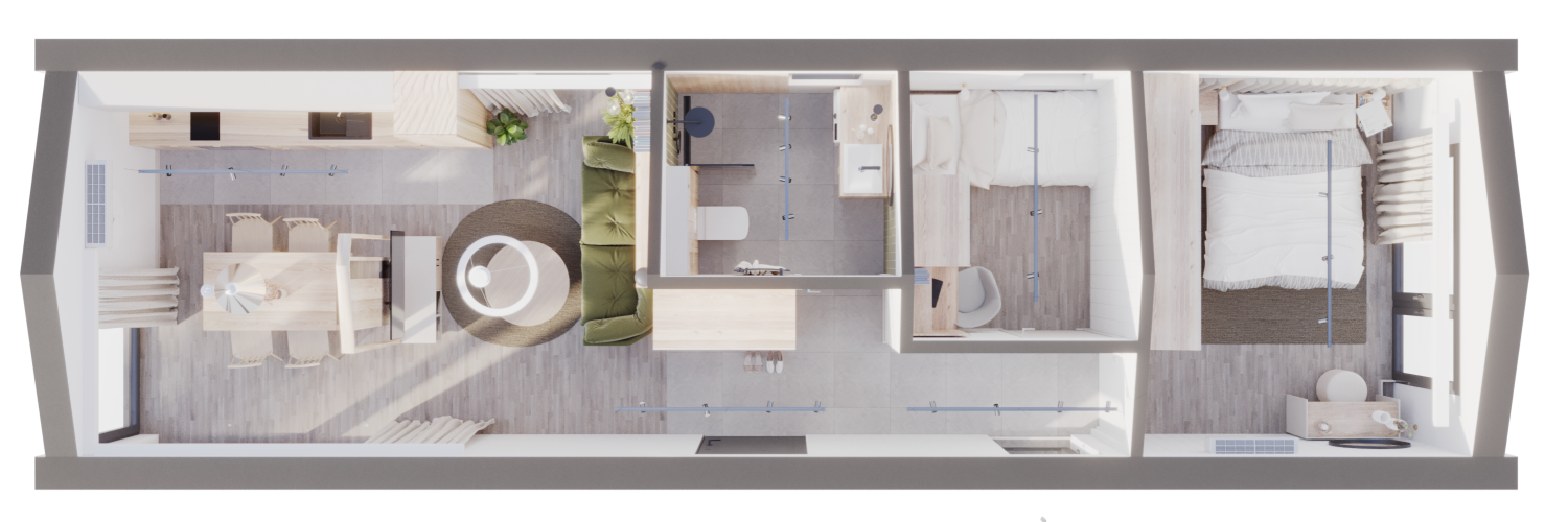 Wir bieten die RAM Häuser in den Ausstattungsvarianten LIGHT, BASIC und COMFORT an. Sie können vollständig ausgestattet sein – mit allen Möbeln, Haushaltsgeräten, einer Küche, einem Badezimmer und vielem mehr – und stellen somit eine ausgezeichnete Alternative zu herkömmlichen Wohngebäuden dar. Ganzjährige Häuser eignen sich am besten für kleine Grundstücke und in der Nähe der Natur.
